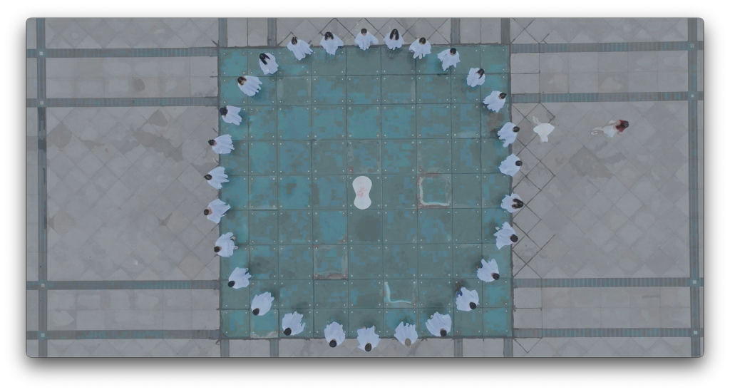 From the 22nd to the 26th person, symbolizing the menstrual period, the liquid in their water pistols corresponds to the different colors of blood on different days of the menstrual cycle, from light to dark. In the video, on the 22nd day when I experience menarche, I express anxiety, confusion, and menstrual pain. I then change into clean clothes, continue to the first day of the next cycle (the second circle), and eventually return to the 22nd day, where I put on a sanitary pad again.”